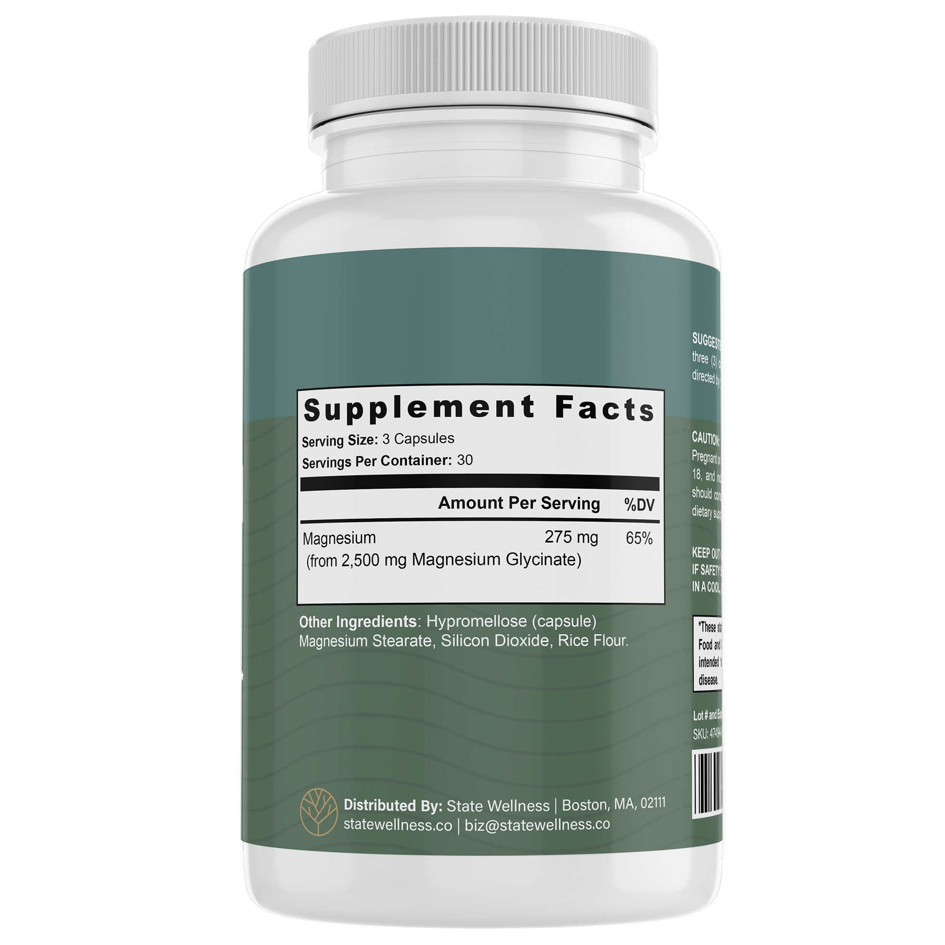 - 275 mg Elemental Magnesium (from 2500 mg Magnesium Glycinate)